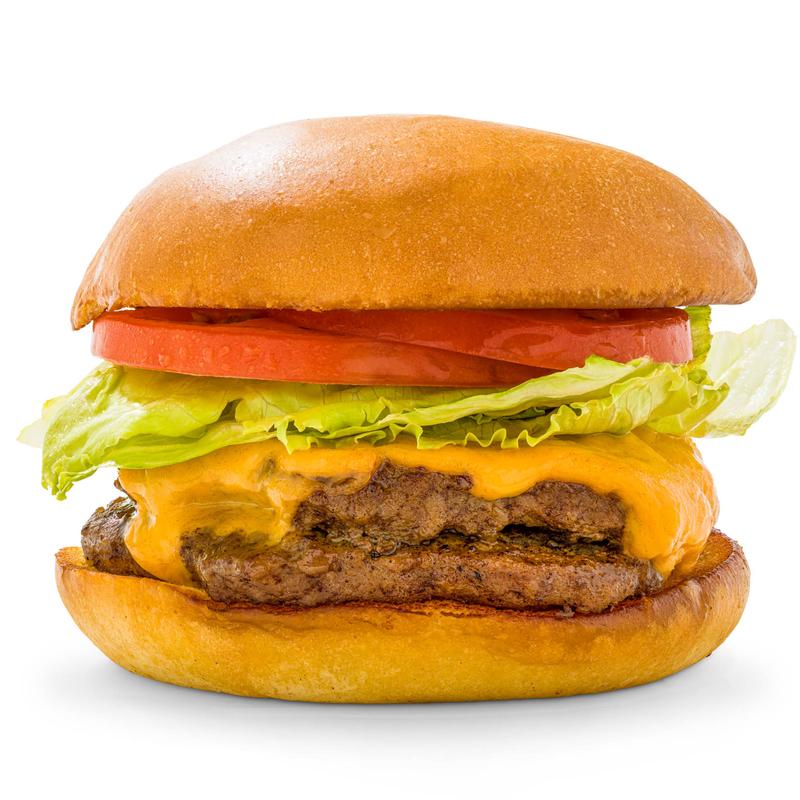 Two beef patties. Comes with cheese, lettuce, tomato, grilled onions, pickles, ketchup, mayo & mustard.
